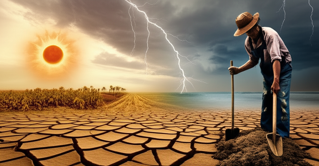 Peningkatan suhu global mempercepat penguapan, memperpanjang musim kemarau di beberapa wilayah, dan mengganggu siklus pertumbuhan tanaman. Pola curah hujan yang tidak menentu – kekeringan berkepanjangan di satu wilayah, banjir bandang di wilayah lain – menghancurkan panen, merusak infrastruktur pertanian, dan mengurangi kesuburan tanah. Gelombang panas ekstrem, badai yang lebih intens, dan perubahan musim tanam menjadi semakin sering dan tak terduga, membuat petani kesulitan merencanakan penanaman dan panen.